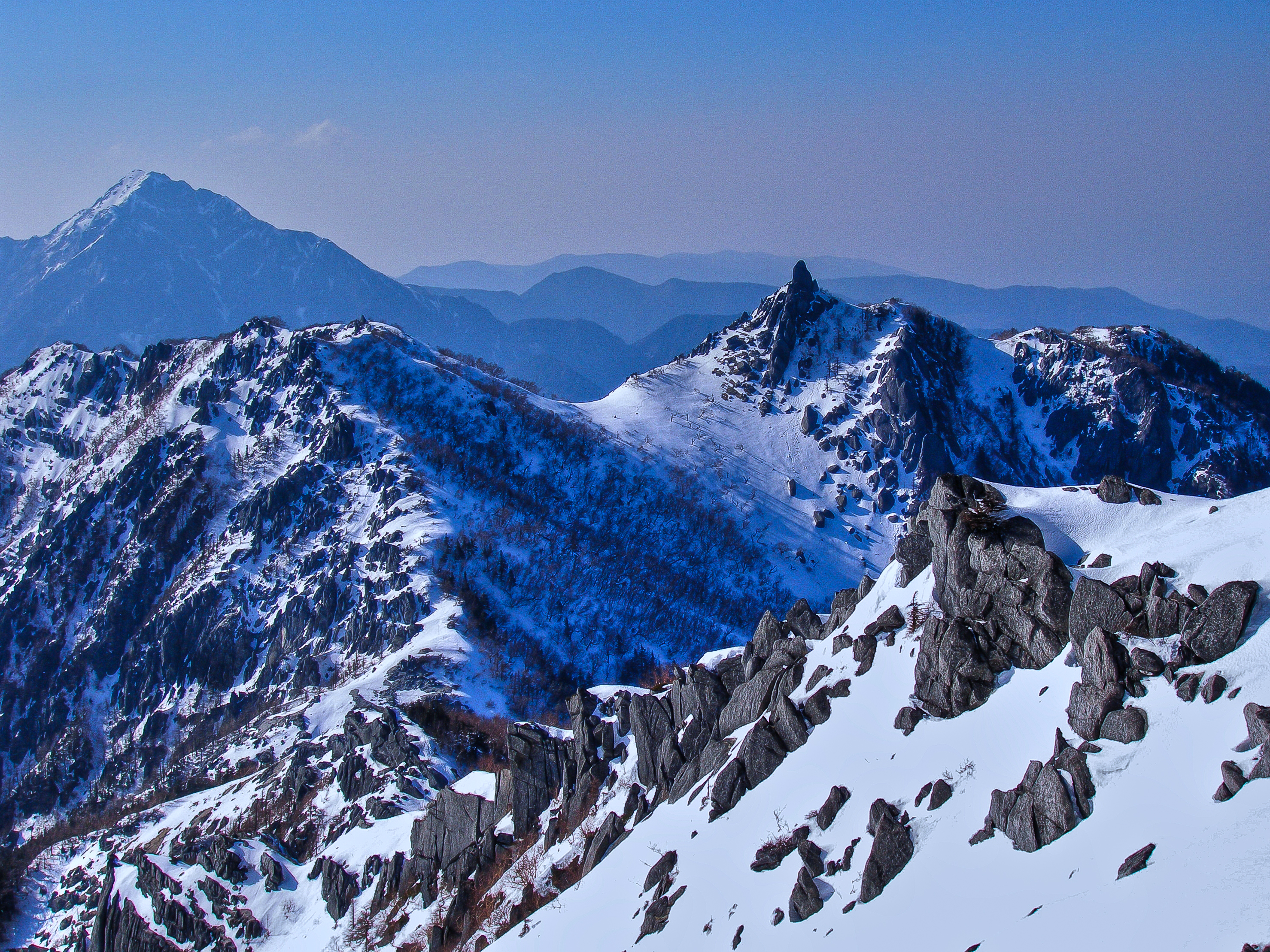 A stately peak in the Northern Alps visible from Matsumoto City that has lured climbers for over a century at least. Climb via the Ichi-no-sawa Course and you can’t go wrong. After that there are options to stay on the ridge either north or southwards, drop into Kamikochi or back down to Matsumoto either the way you came or what looks to be a knee-knocker off the summit and over Mae-jonen. Bah! Who am I kidding? They’re all knee-knockers. BTW: Matsumoto Castle is great.