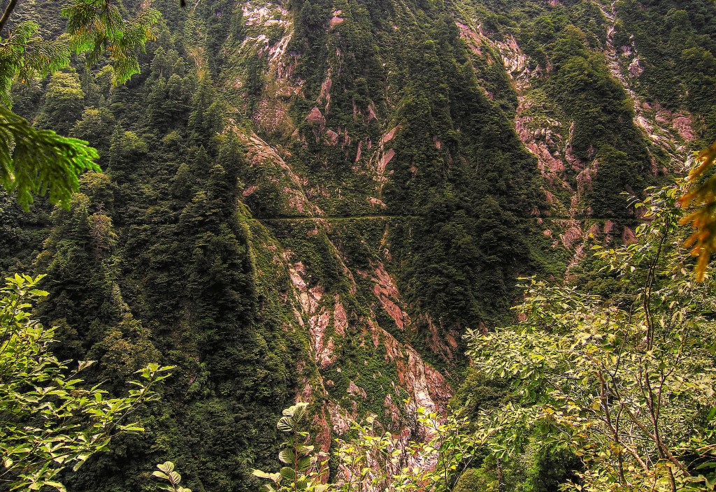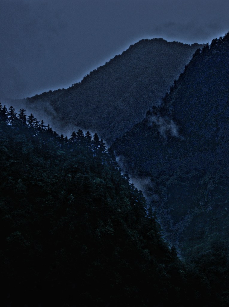 The morning dawned heavy and grey. Cloud clung to the walls of the gorge like the leeches I feared the weather would conjure up. Mountaintops for the most part were lost in the mist.
